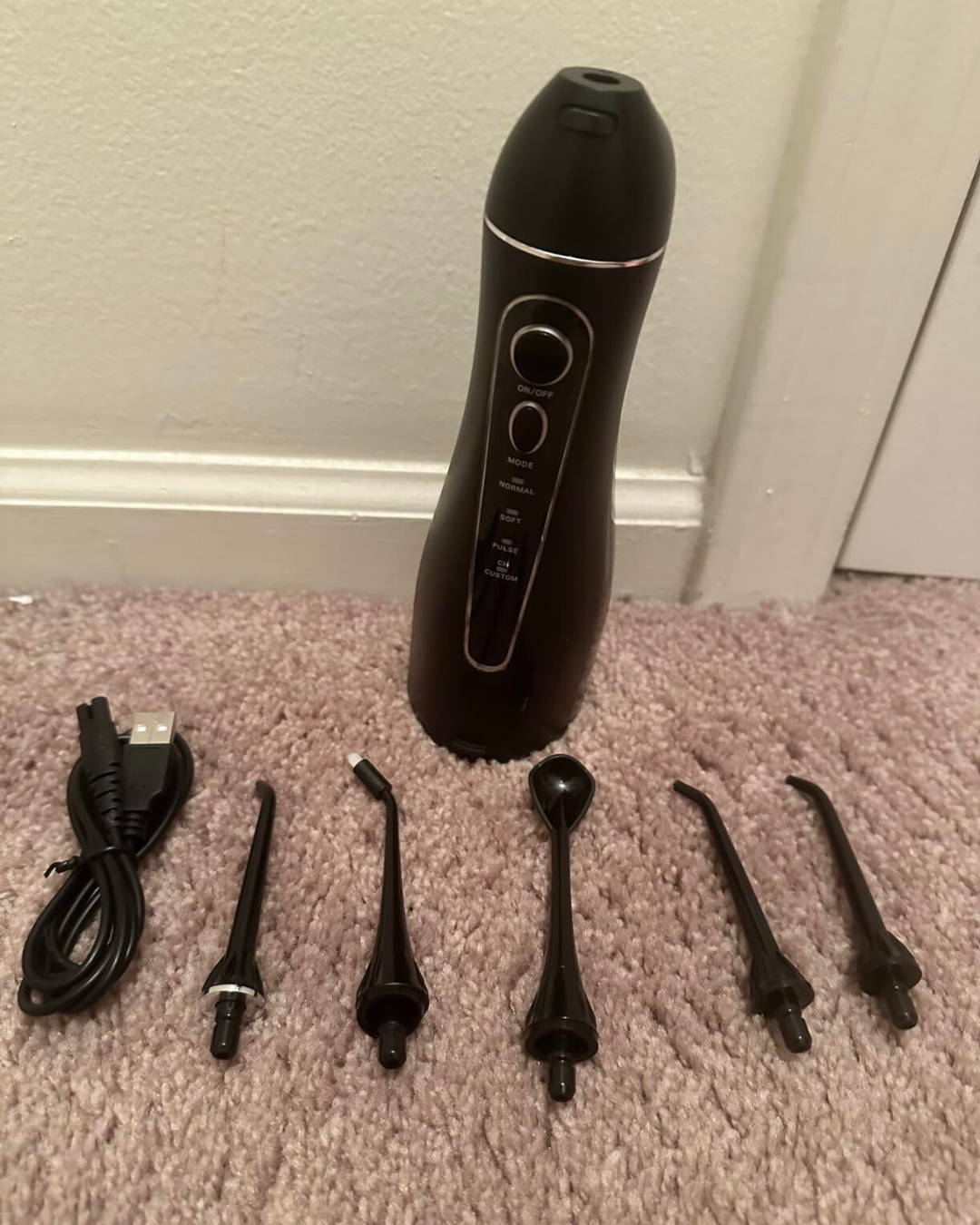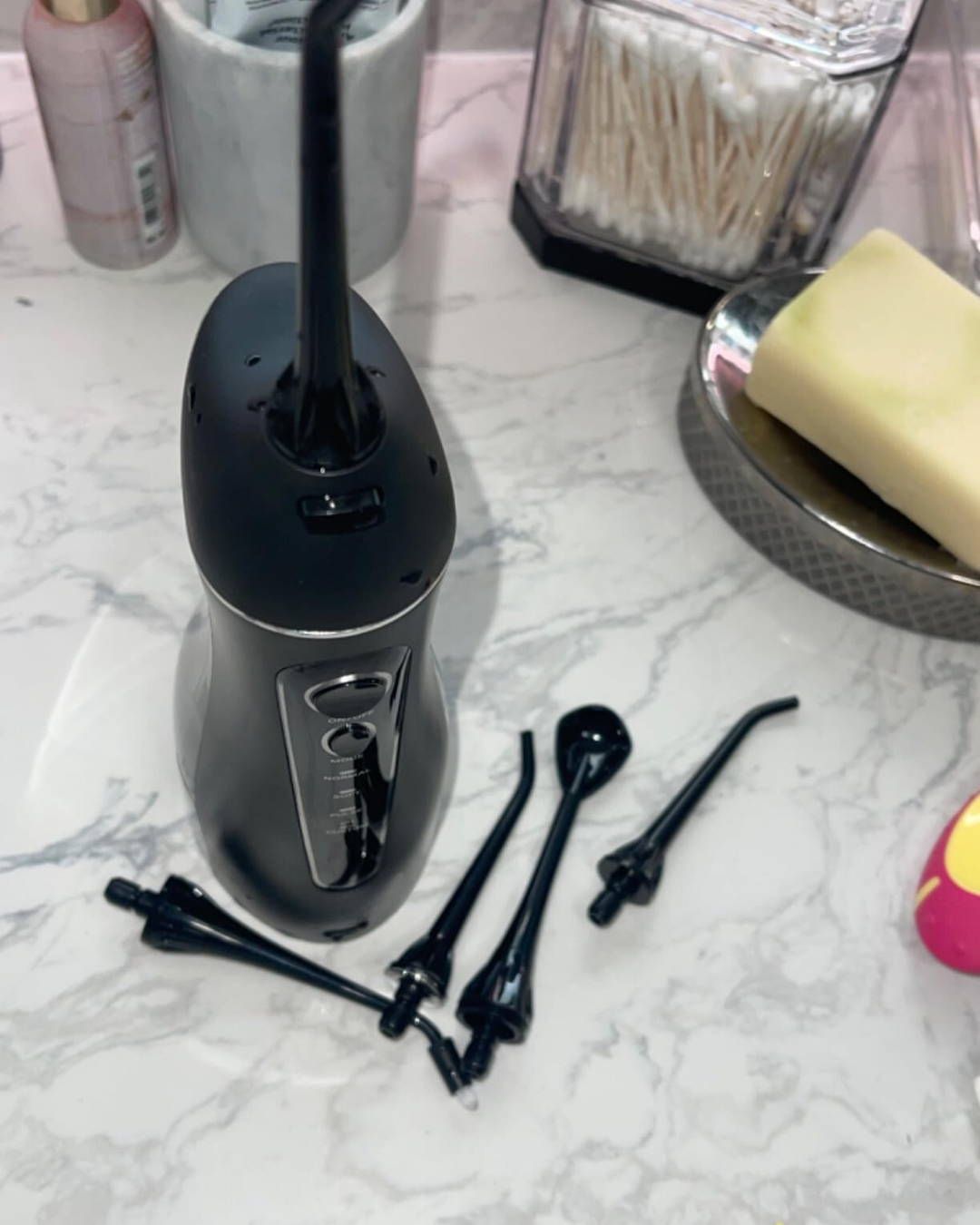 AquaFlosser est livré avec 3 embouts classiques pour un nettoyage quotidien efficace, 1 embout gratte-langue pour une haleine fraîche, et 1 embout orthodontique spécialement conçu pour nettoyer autour des appareils dentaires et des zones difficiles d’accès, offrant ainsi une solution polyvalente pour tous vos besoins dentaires.