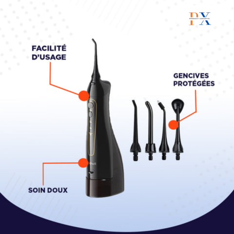 Grâce à son jet d’eau puissant, AquaFlosser accède aux endroits souvent inaccessibles pour une brosse à dents, comme les espaces entre les dents et autour des appareils dentaires. Il assure une propreté impeccable et une hygiène optimale.